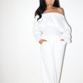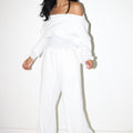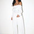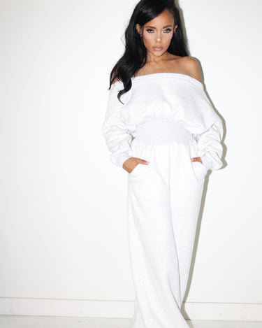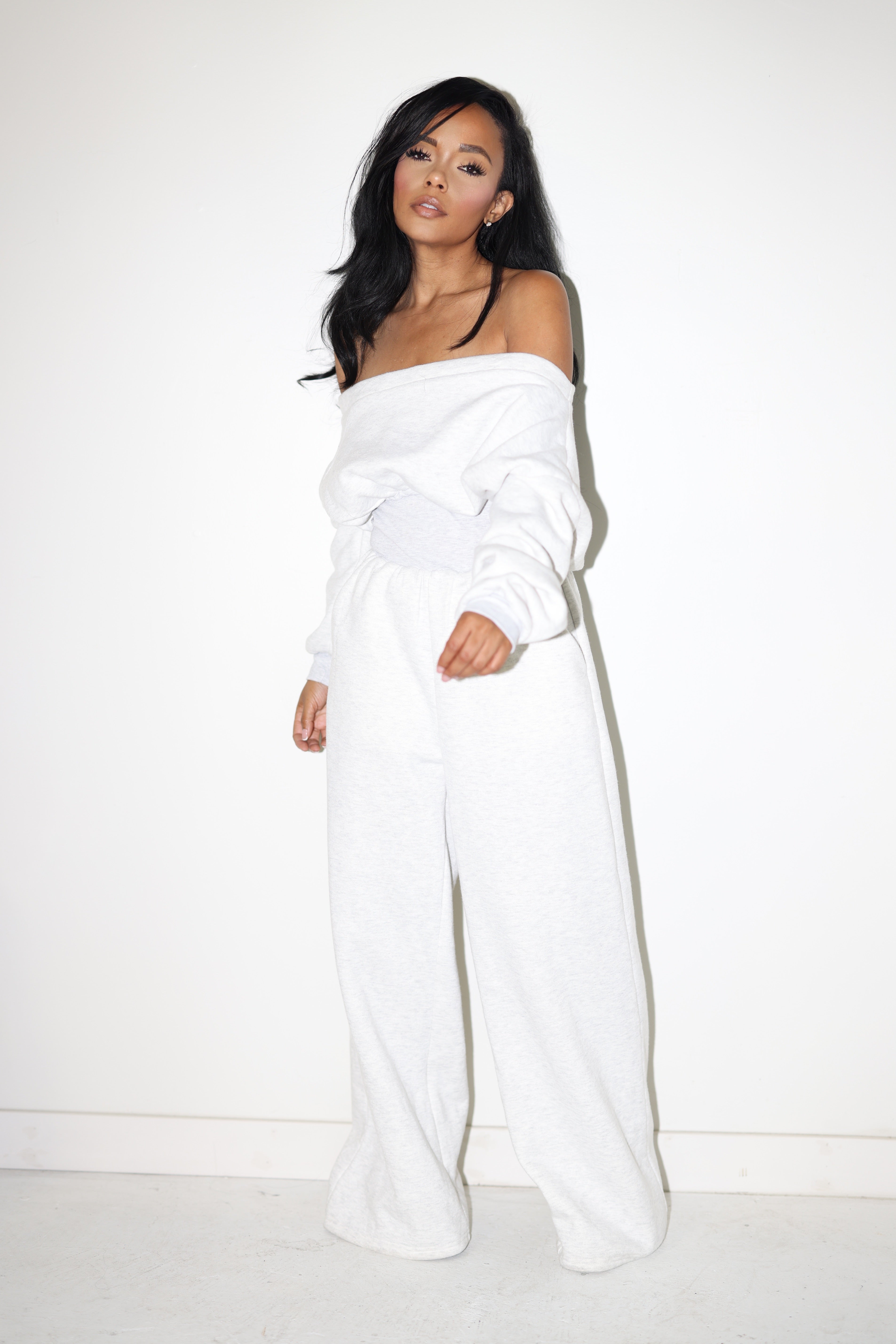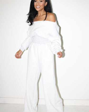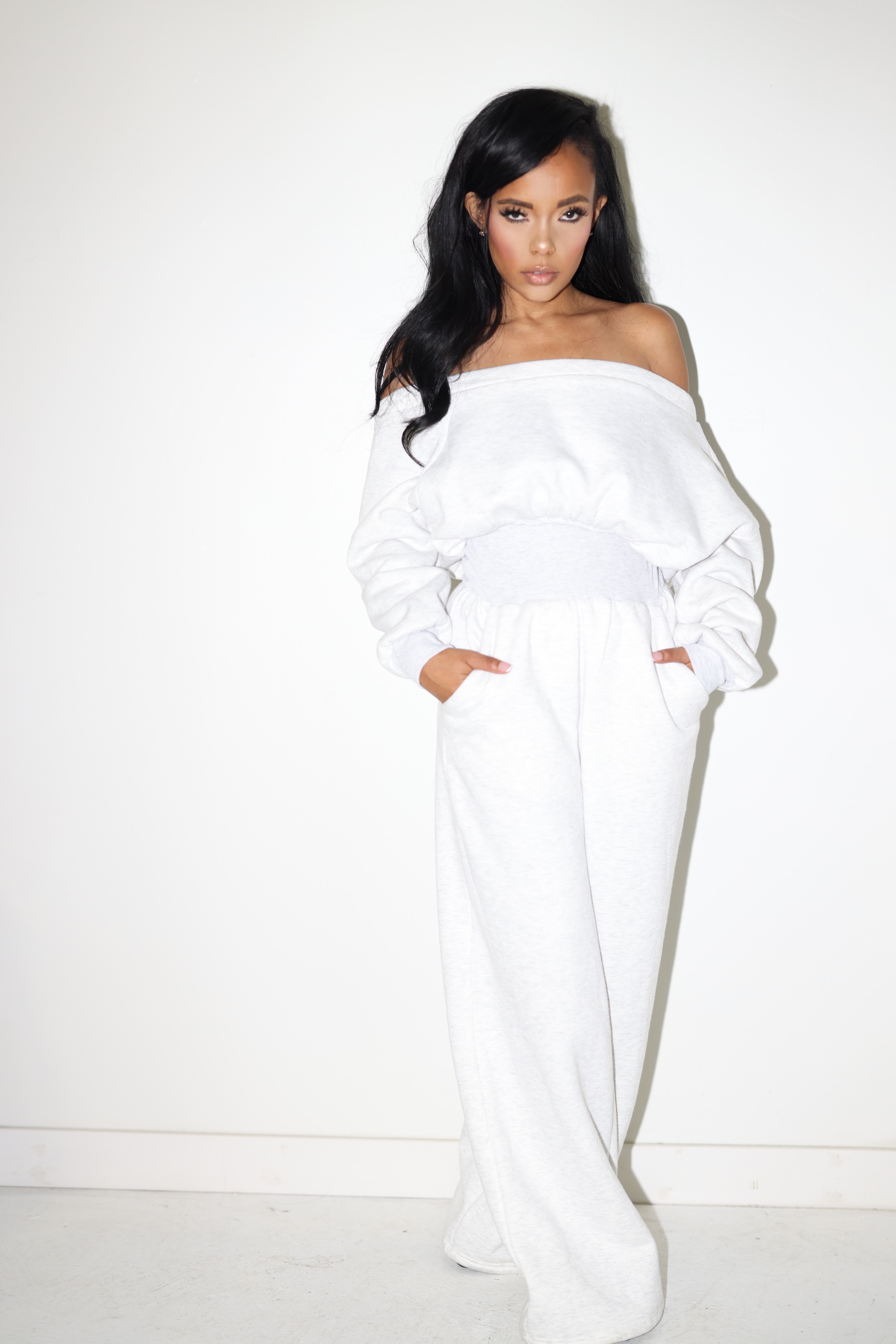 Step into all-day ease with the Daydream Jumpsuit—a one-piece wonder that blends comfort, confidence, and quiet luxury. Crafted from ultra-soft fleece, this off-the-shoulder design drapes effortlessly while the cinched waistline creates a flattering, feminine shape. The wide-leg silhouette elongates your frame, making this jumpsuit as chic as it is comfortable.