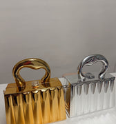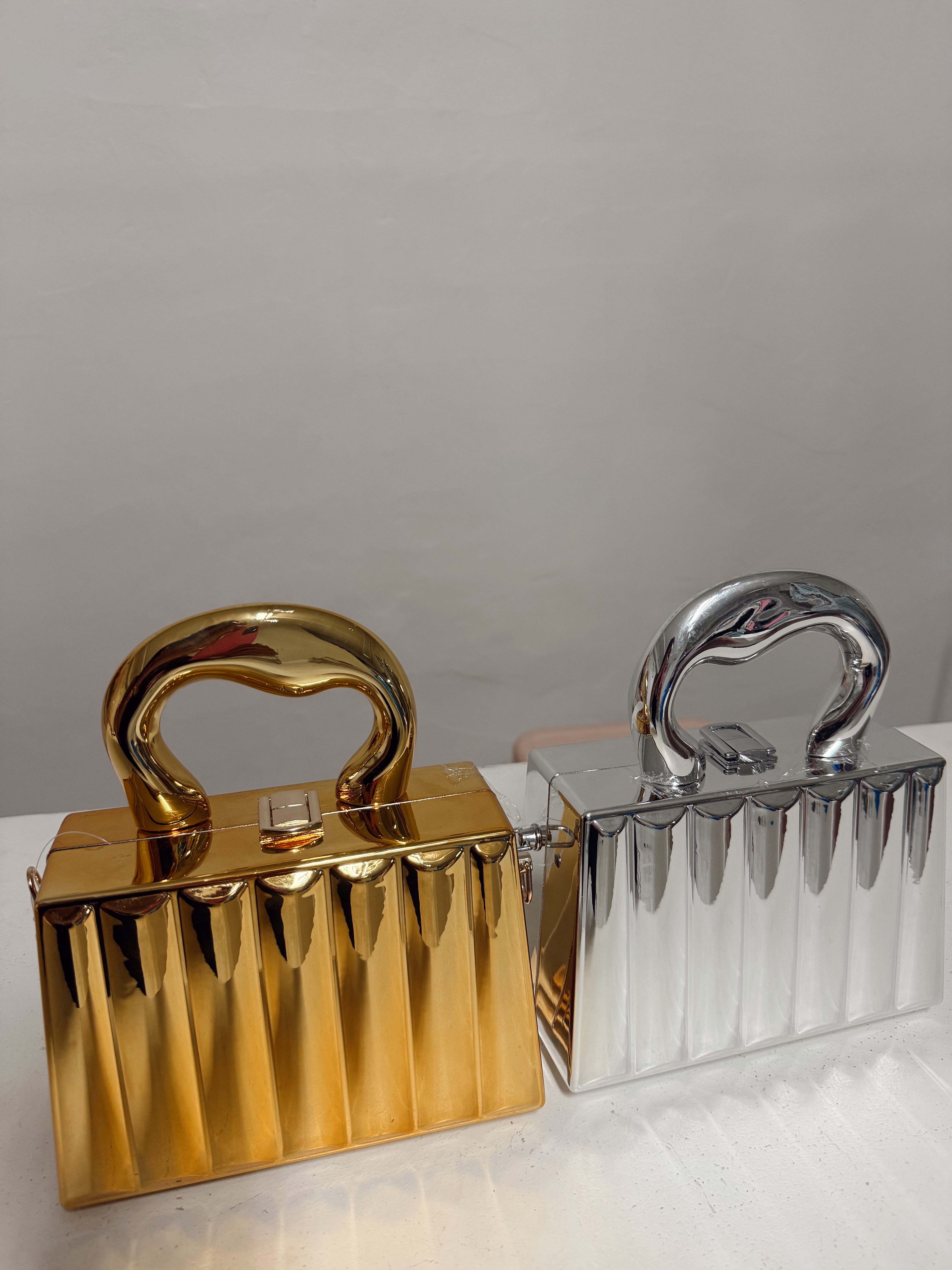 With its bold ridged design, chunky curved handle, and compact size, it’s the perfect mix of playful and luxe. Whether you’re hitting a girls’ night out, a rooftop soirée, or stepping into date night, this bag guarantees you’ll shine like the main event.