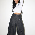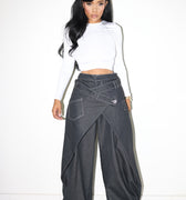 Dare to redefine denim with the Vanguard Pants—a cutting-edge silhouette that transforms everyday style into wearable art. Designed with dramatic volume and a sculptural drape, these wide-leg pants feature layered, wrap-style panels that create movement and dimension from every angle.