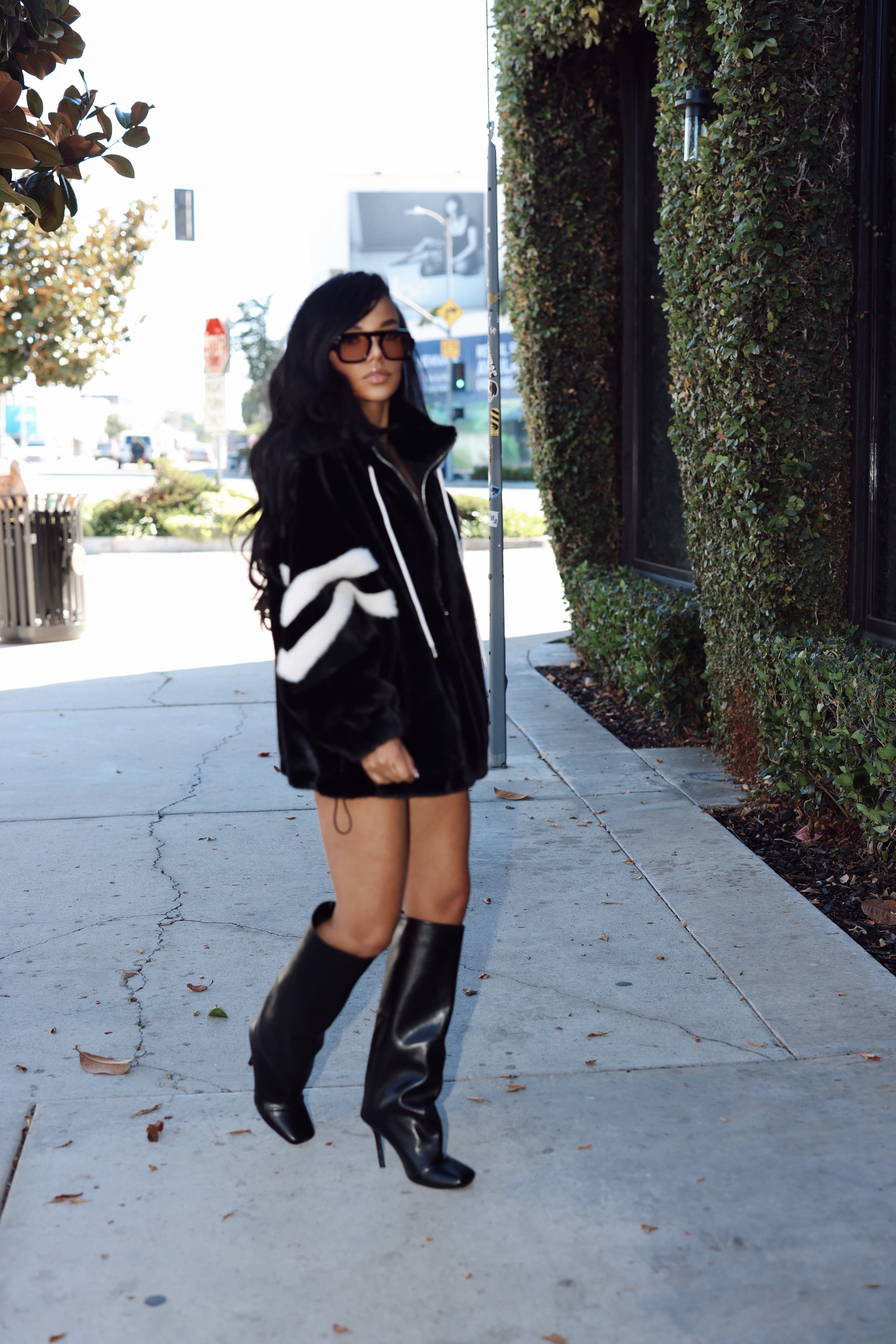 • Styling Tip: Pair it with thigh-high or knee boots for a legs-for-days moment, or dress it down with leggings for luxe-athleisure ease.