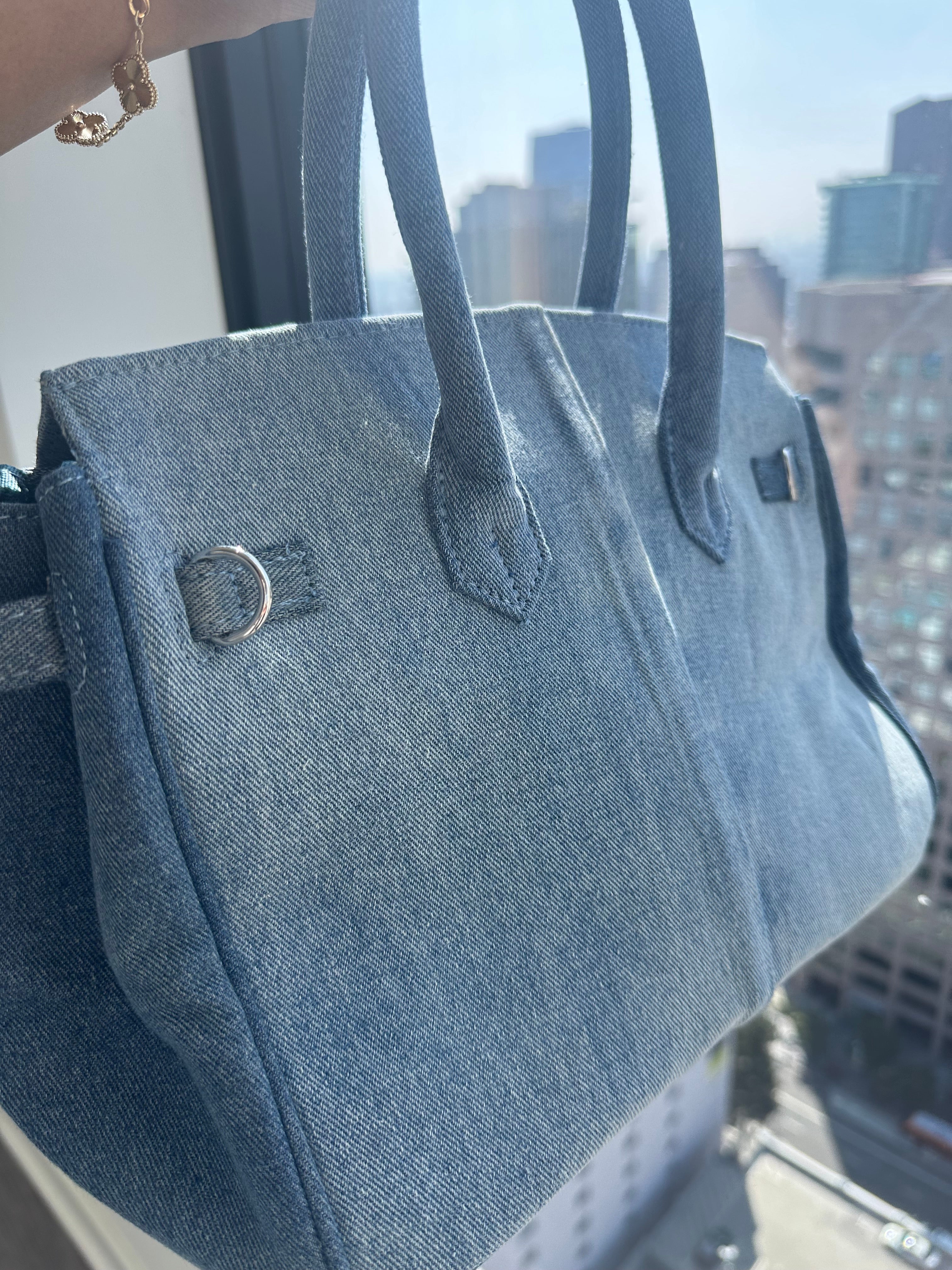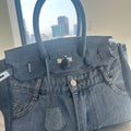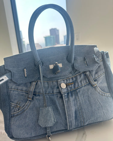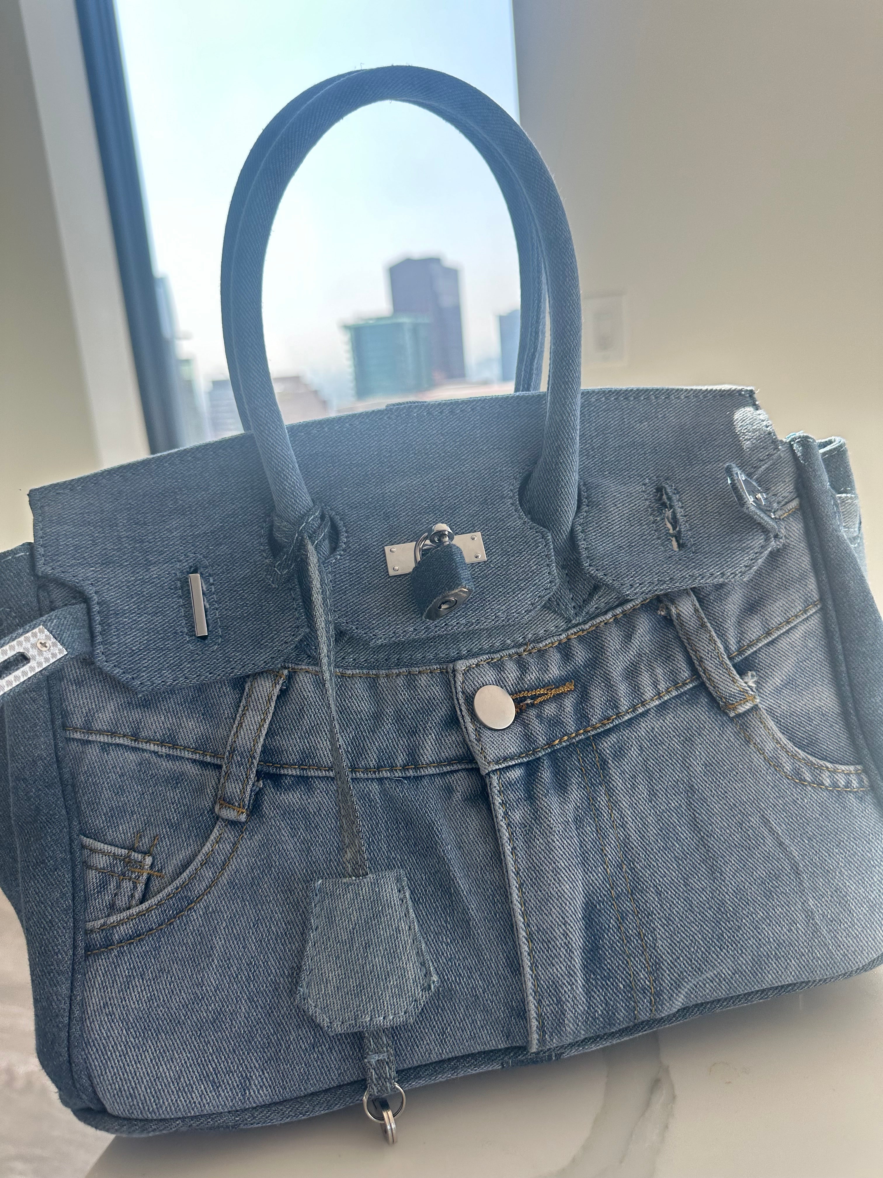 Say hello to your new It Girl essential. The Denim Dream Tote is a bold blend of runway luxury and everyday cool. Crafted from premium, structured denim, this handbag channels Birkin energy with a modern street-style twist. From the classic rolled handles to the statement hardware and playful jean pocket detailing, this tote gives fashion authority from every angle.