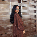 - Boxy top can be tied, tucked, or worn open for layered styling