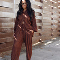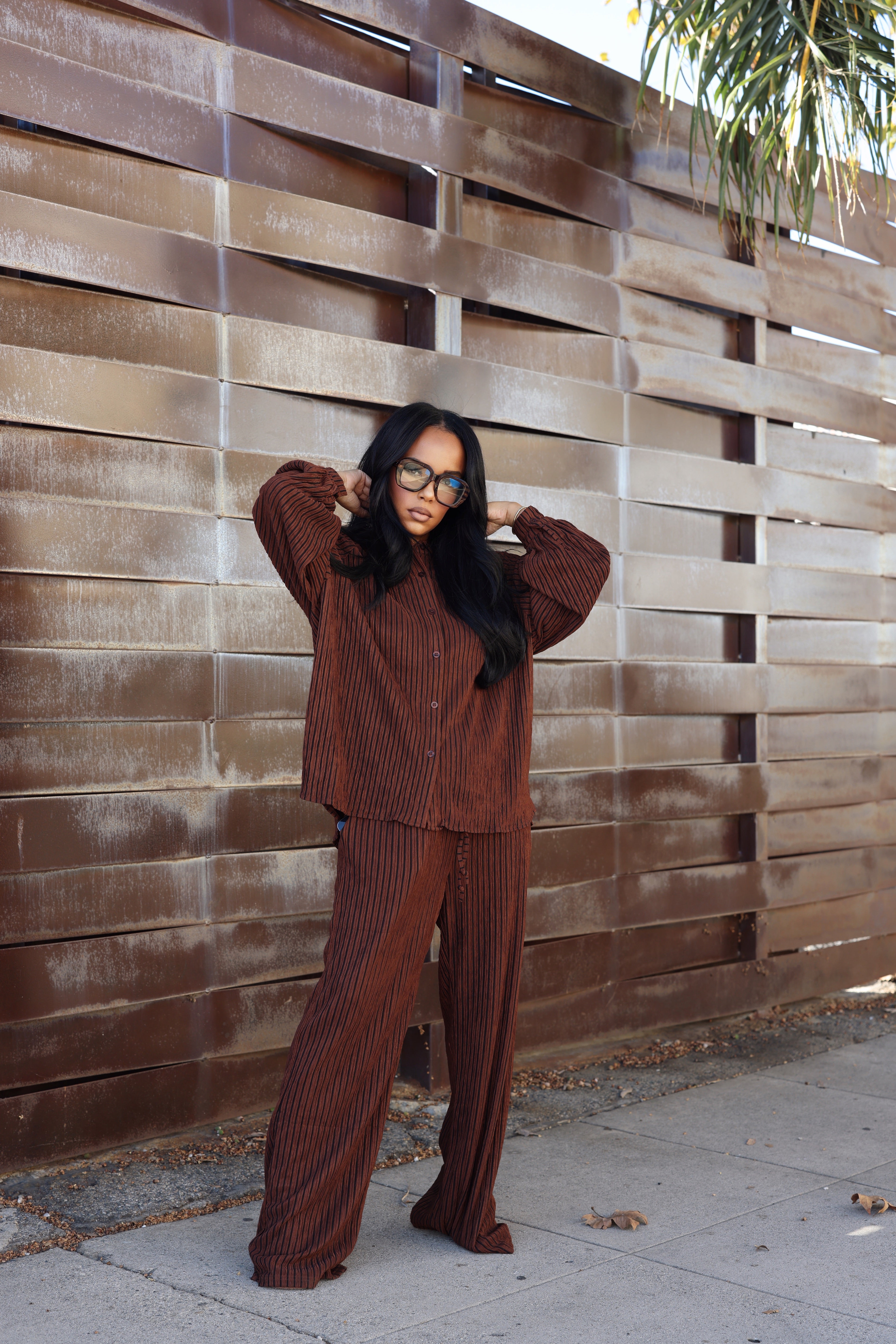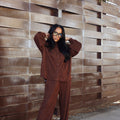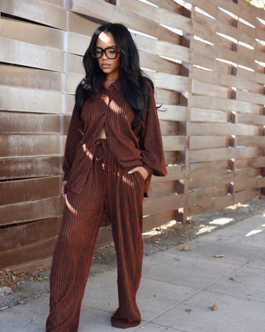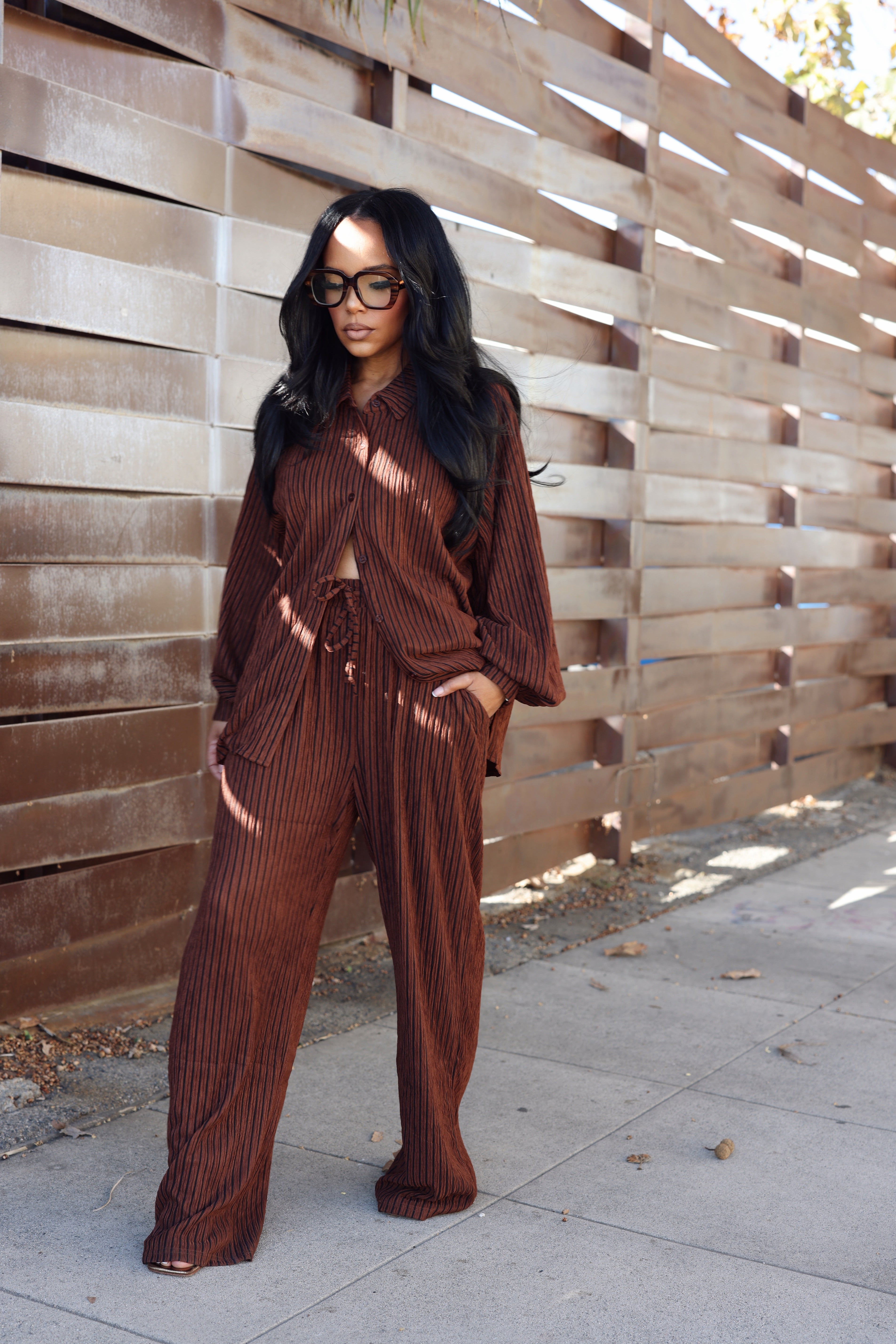 Meet your new closet cheat code: the Mood Set, a ribbed, wide-leg pant and oversized tie-front shirt crafted from buttery-soft, breathable fabric that drapes like a dream. Designed to look like a million — without the guilt — this matching set gives effortless, elevated vibes whether you’re grabbing coffee, running a meeting, or doing a slow-motion sidewalk flex. The high-waist elastic drawstring pants create an elongated silhouette while the oversized blouse (tie at the waist or wear loose) flatters every body. Minimal effort, maximum receipts. Girls will want the look — and their wallets will follow.