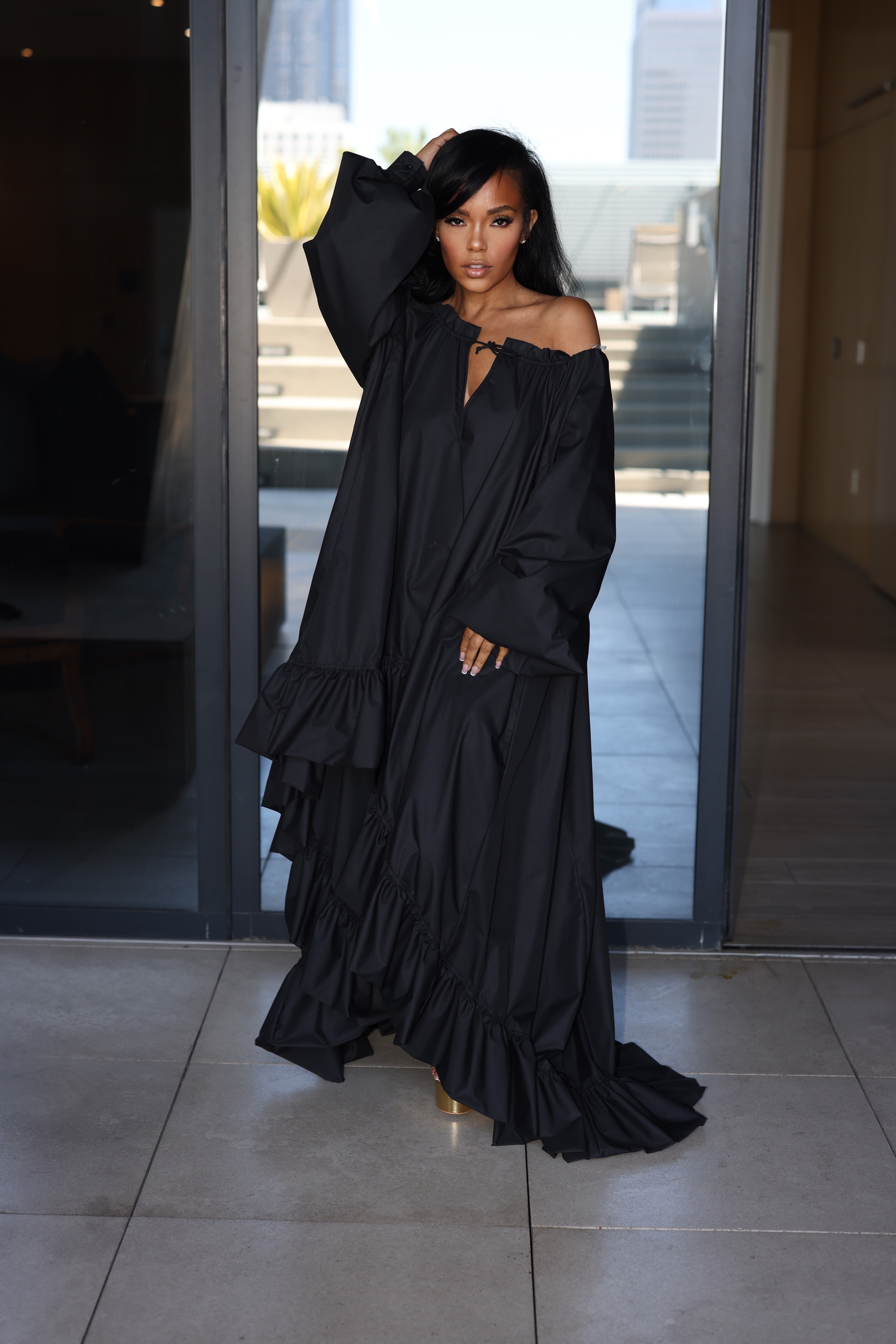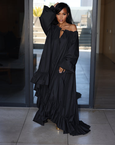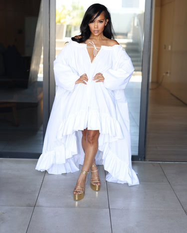 Turn every entrance into a moment in our Summer Muse Off-Shoulder Maxi Dress. This effortlessly elegant silhouette is designed to float with you—featuring a billowy high-low hemline, statement ruffle trim, and soft off-shoulder neckline that shows just enough skin. The delicate front tie detail adds a touch of romance, while the breezy cotton-blend fabric keeps you cool and chic from golden hour cocktails to sunset strolls.