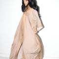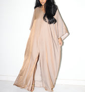 Slip into effortless glam with the Golden Hour Moo Moo—a one-size, around-the-house essential designed for the woman who lounges like a legend. Crafted from a lightweight, buttery fabric with a subtle sheen, this kaftan-style silhouette drapes like a dream and moves with you, whether you’re hosting at home or sipping something sparkling by candlelight.
