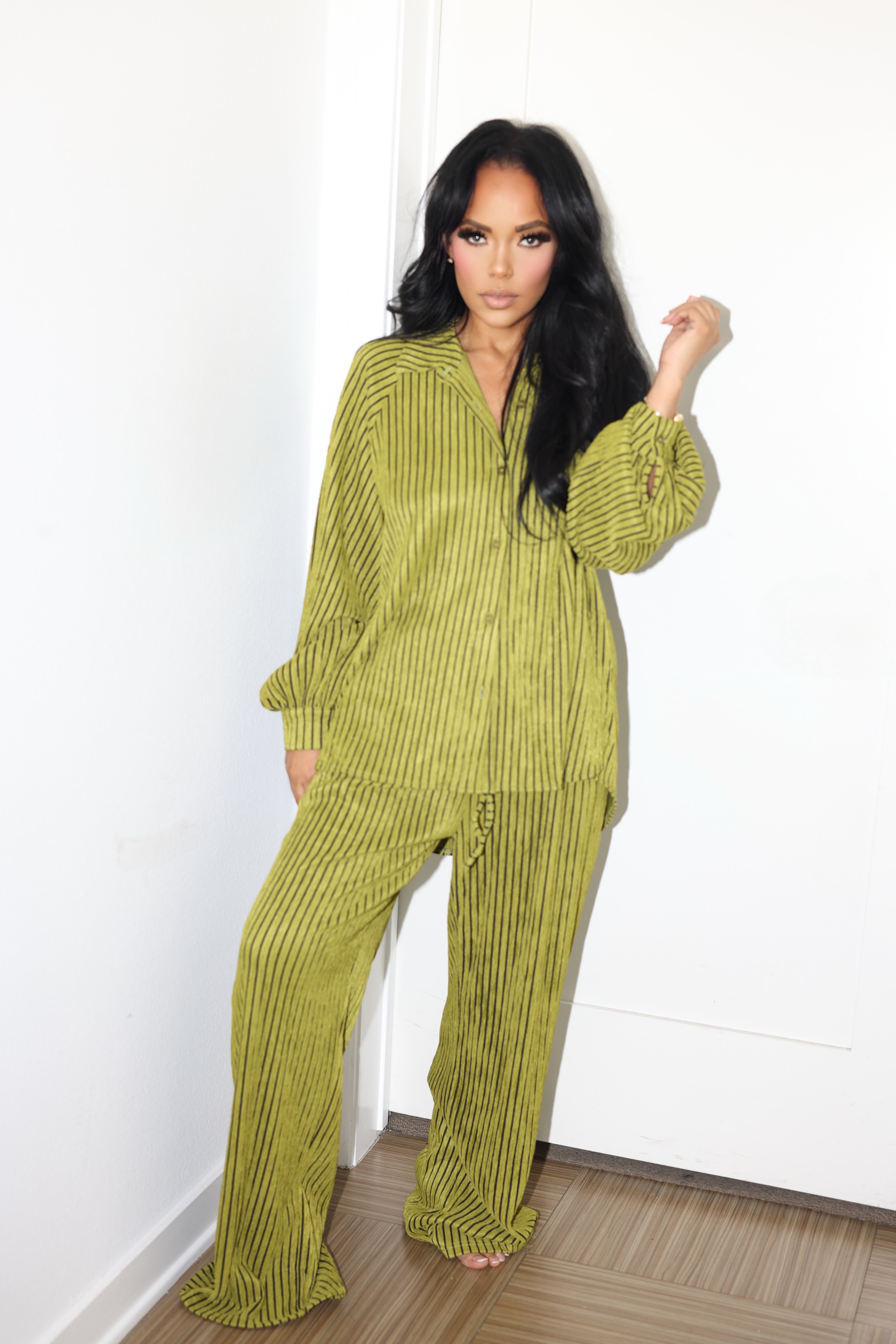 Meet your new closet cheat code: the Mood Set, a ribbed, wide-leg pant and oversized tie-front shirt crafted from buttery-soft, breathable fabric that drapes like a dream. Designed to look like a million — without the guilt — this matching set gives effortless, elevated vibes whether you’re grabbing coffee, running a meeting, or doing a slow-motion sidewalk flex. The high-waist elastic drawstring pants create an elongated silhouette while the oversized blouse (tie at the waist or wear loose) flatters every body. Minimal effort, maximum receipts. Girls will want the look — and their wallets will follow.