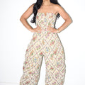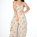 Meet The Garden Reverie Jumpsuit — a floral fantasy come to life. Inspired by heirloom tapestries and romantic afternoons, this strapless statement piece blends vintage charm with modern luxury. The structured bodice features a subtle notched neckline that flatters the décolletage, while the voluminous ruched legs bring bold drama and sculptural texture to the silhouette.
