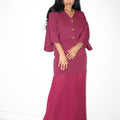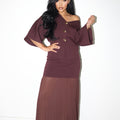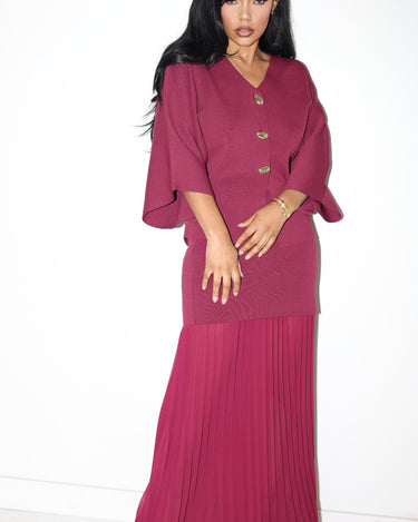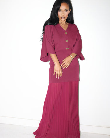 Where sophistication meets ease — the Soft Power Set embodies understated glamour for the woman who moves with quiet confidence. Designed in a rich, jewel-toned palette, this two-piece ensemble pairs a structured knit top with a flowing pleated chiffon maxi skirt for a balance of form and fluidity.