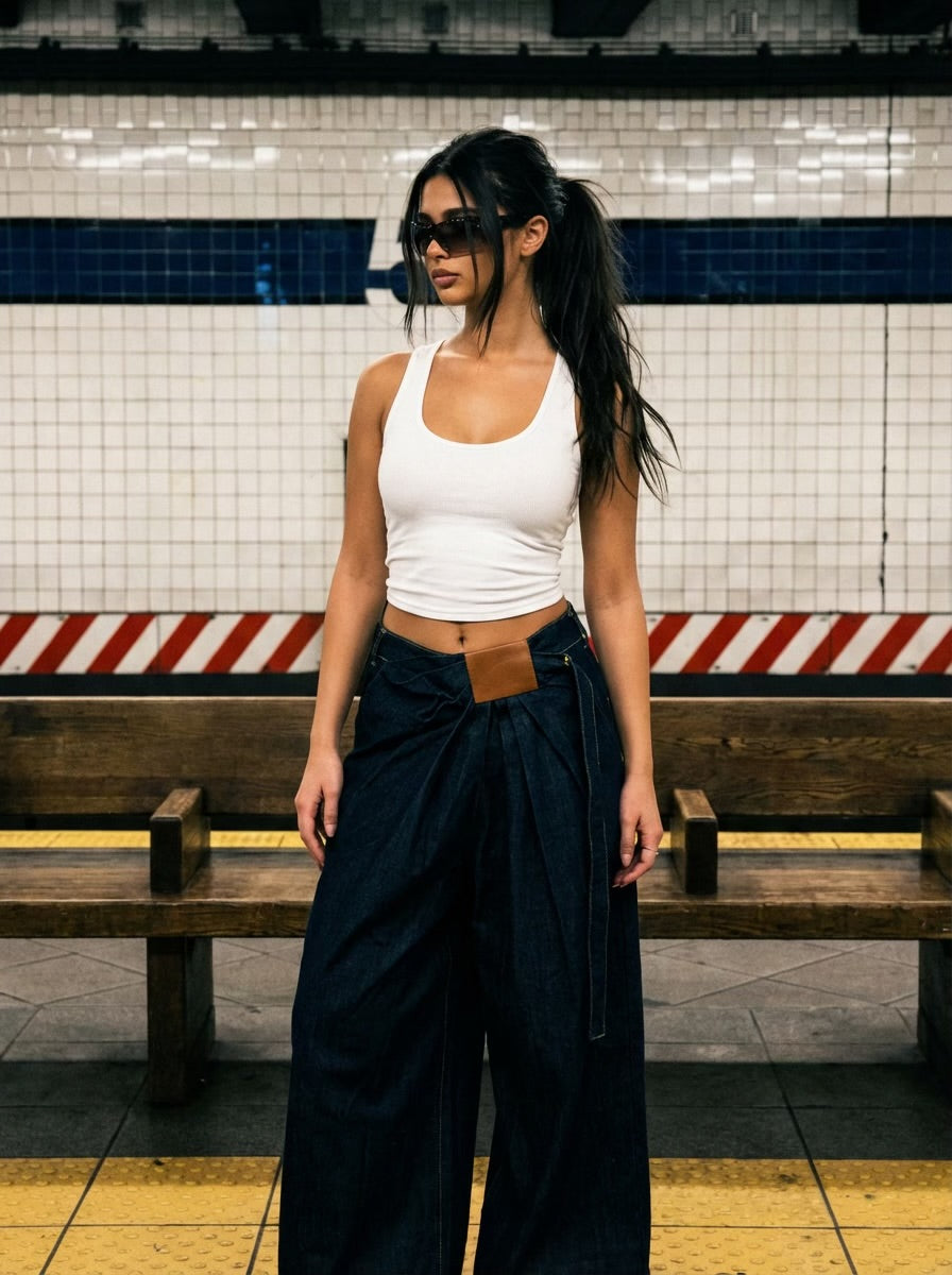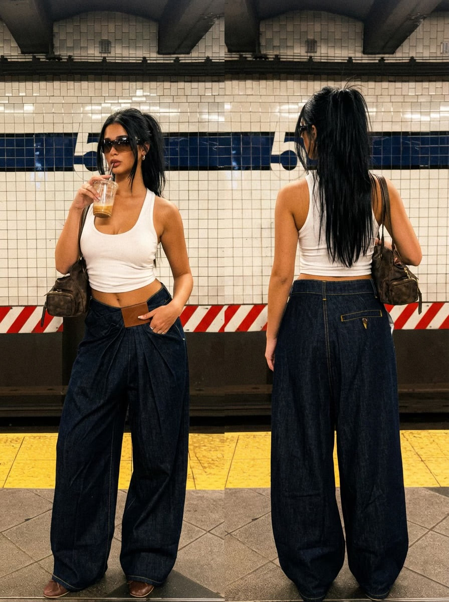 These aren’t your average denim trousers — they’re a statement. The Platform Pleat Pant redefines everyday cool with an architectural drape, exaggerated wide-leg silhouette, and an effortless slouch that feels intentional, not undone. Designed to sit comfortably at the waist with soft pleating that cascades into fluid movement, this pant balances structure and ease in the most elevated way.