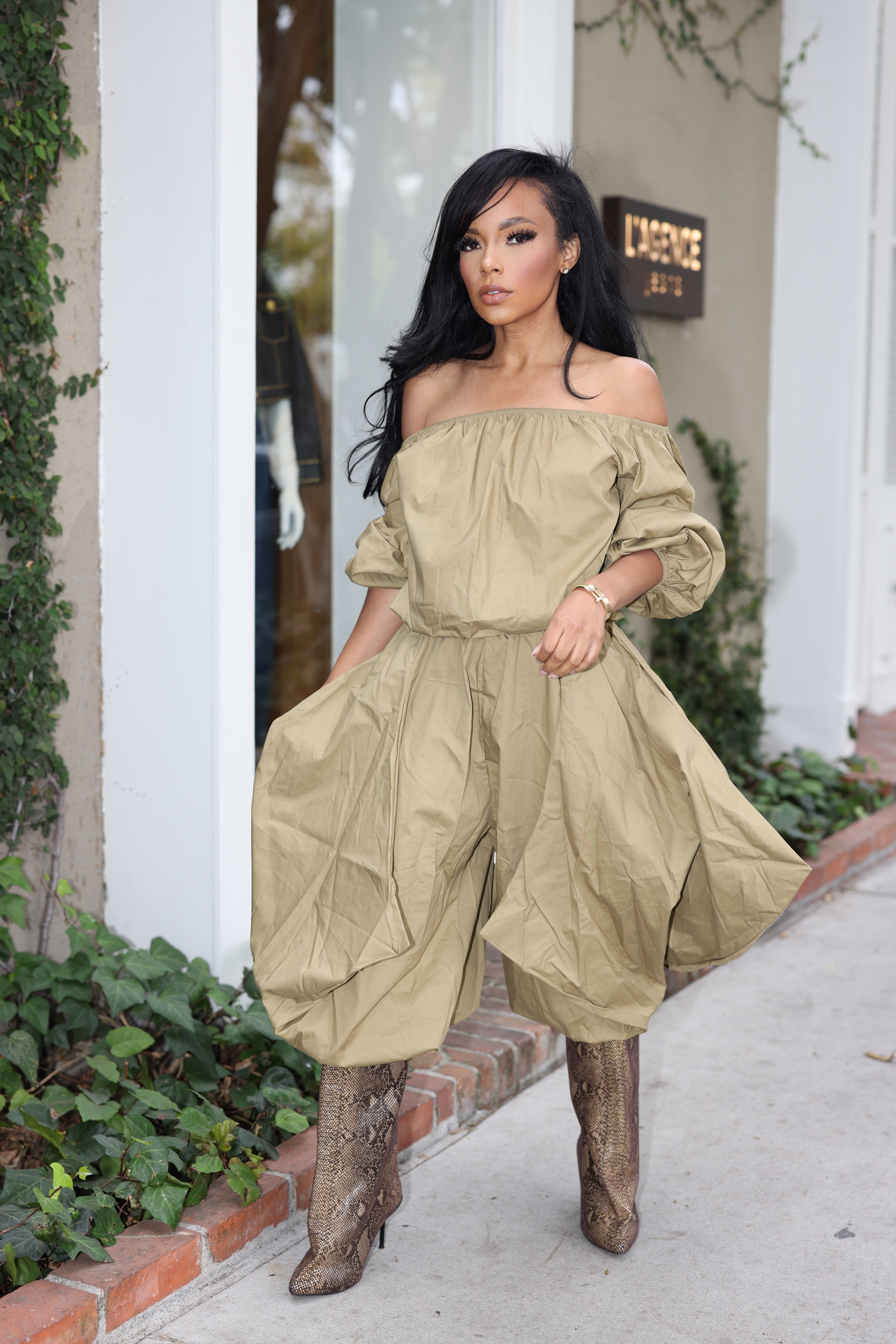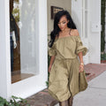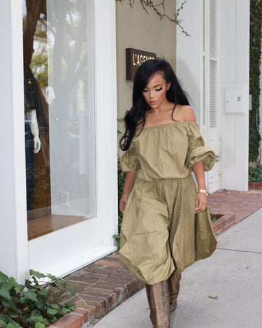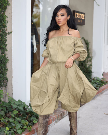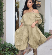 Command the room in The Savannah Set — a modern take on timeless drama. This two-piece ensemble features an off-shoulder billowy top paired with voluminous poofy pants that move like air but serve luxury with every step. The cinched waistline flatters the figure, while the structured silhouette creates an effortlessly chic shape that whispers confidence and ease.