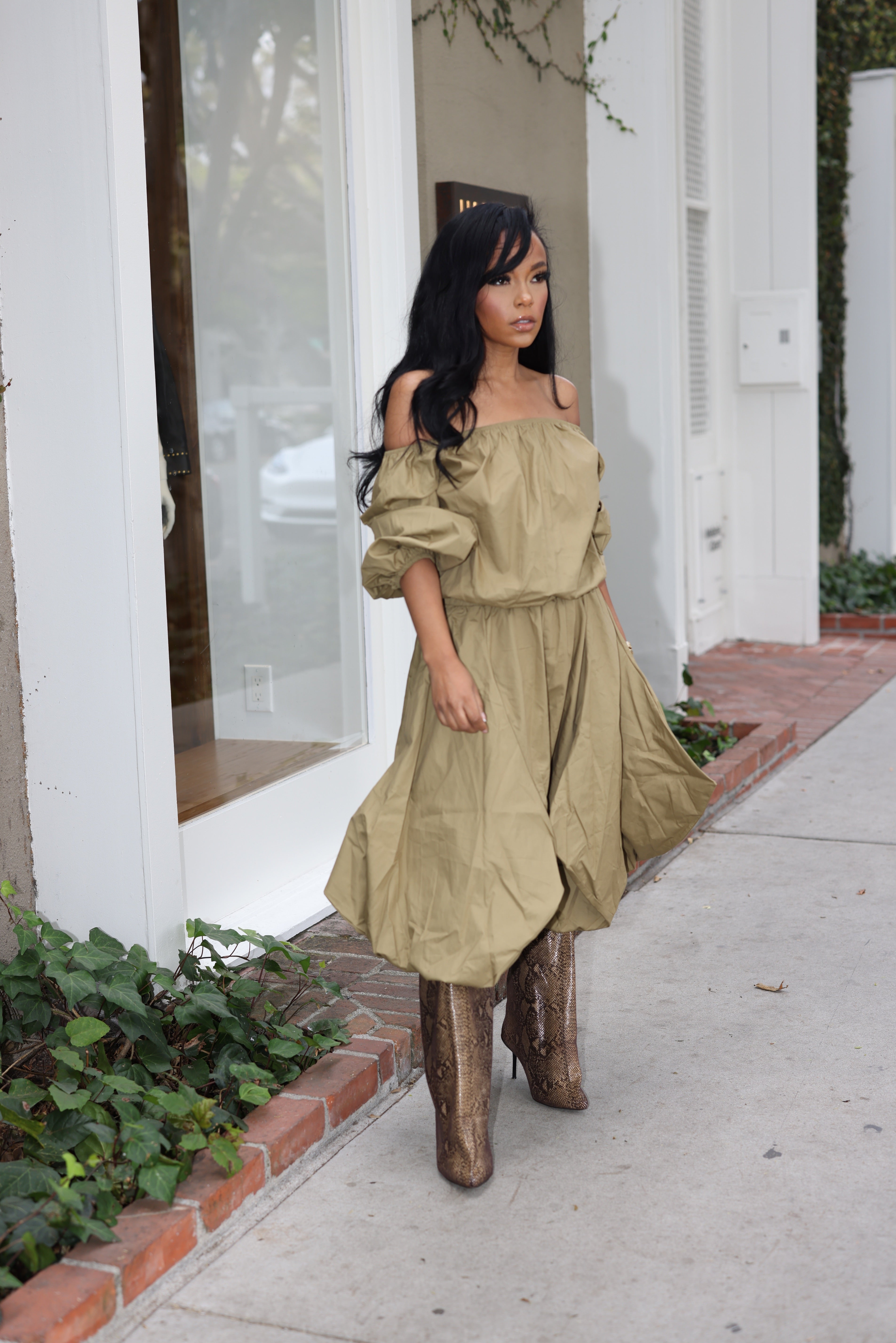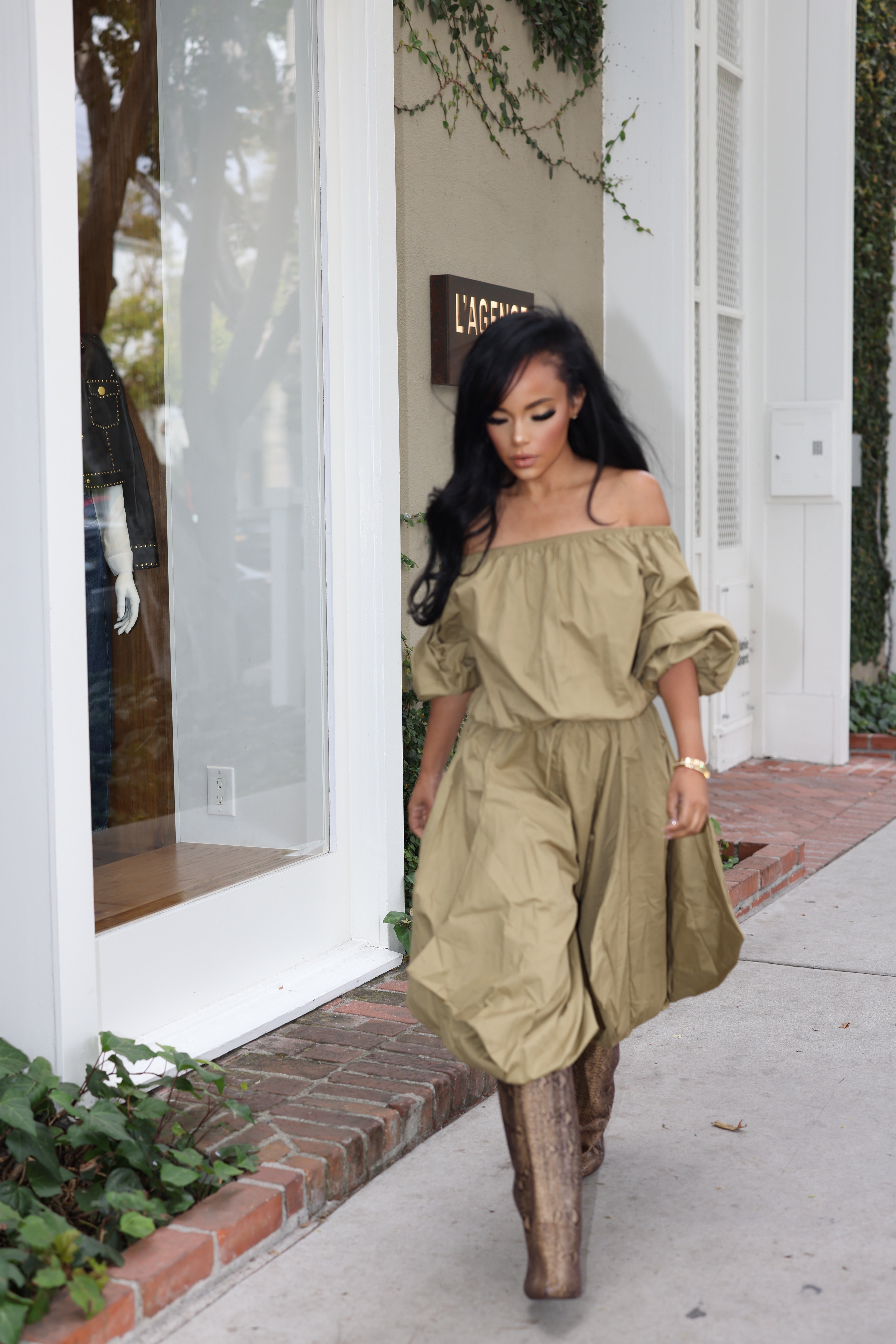 Designed for the woman who redefines feminine power, this look transitions seamlessly from brunch in Beverly Hills to golden hour on Melrose. Style it with statement boots or minimalist heels for a look that’s soft, sculptural, and entirely unforgettable.
