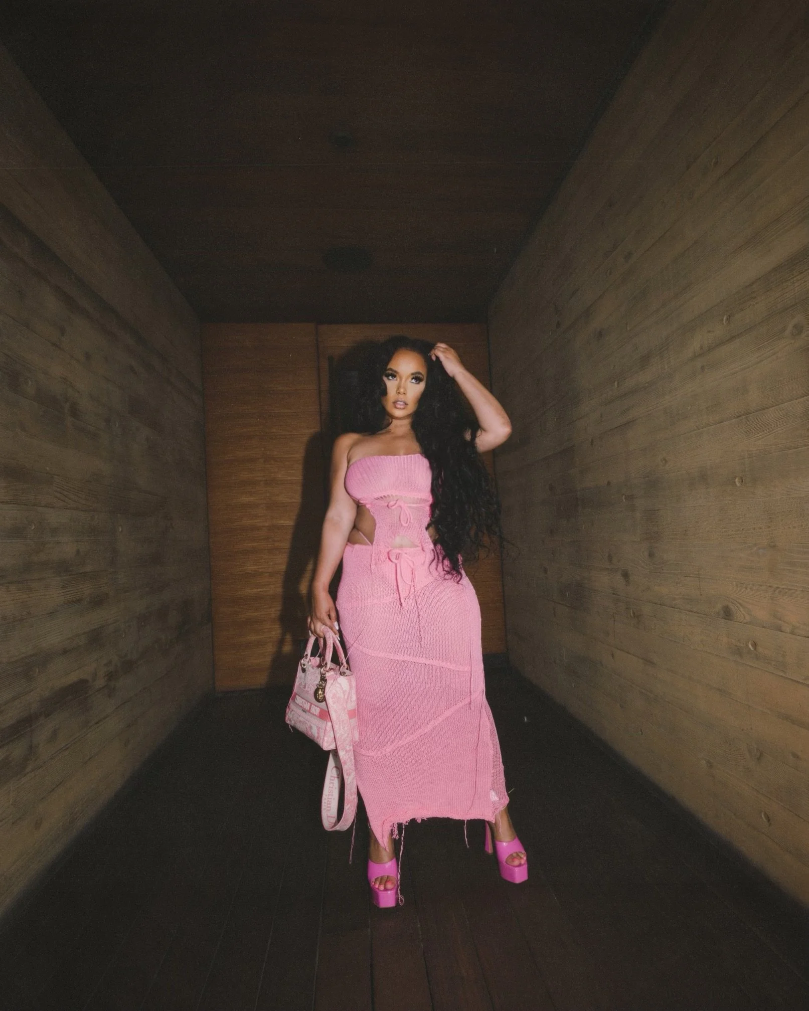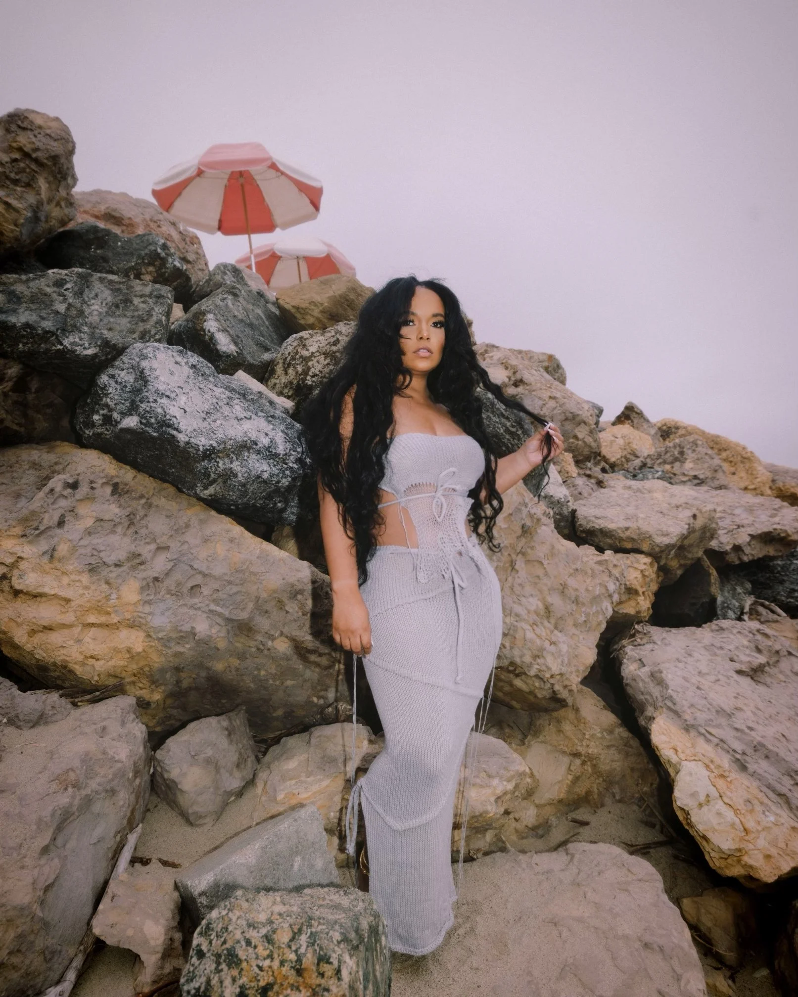 Featuring a strapless bandeau-style top with adjustable lace-up detailing and bold side cutouts, paired with a curve-hugging maxi skirt that drapes effortlessly over the body. Crafted in a soft stretch knit that contours in all the right places while keeping you comfortable from sunset dinners to vacation nights out.